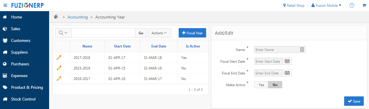 * Fiscal year list with specific start and end datesCapture all expenses, funds transfer and journal entries